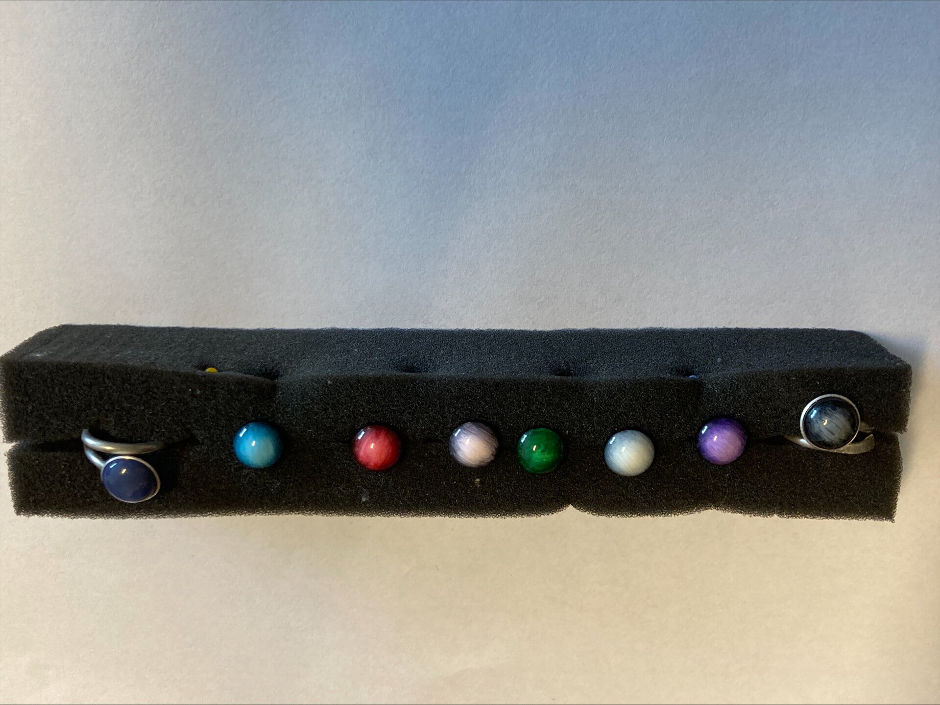 De kleurkeuzes : grijs-zwart, groen, paars, rood,blauwig, zwart-grijs,paarsig,blauw.