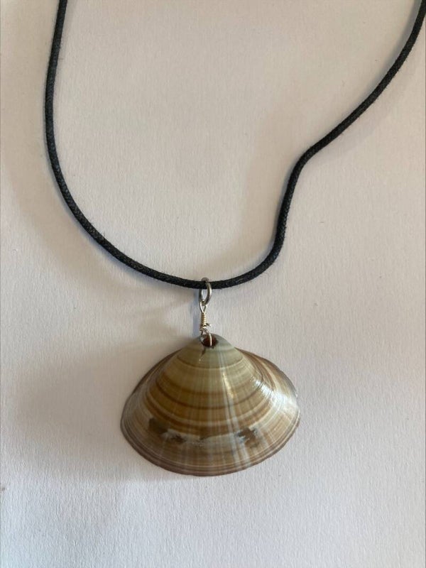 Deze hanger kun je op 2 manieren dragen: de schelpkant of de zeekant. In de schelp zit een klein schelpje verwerkt