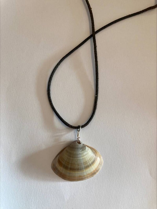 Deze hanger kun je aan 2 kanten dragen. een schelp is al mooi van zichzelf.