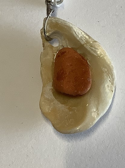 Een hanger van een schelp met een mooi steentje. De natuur is mooi.